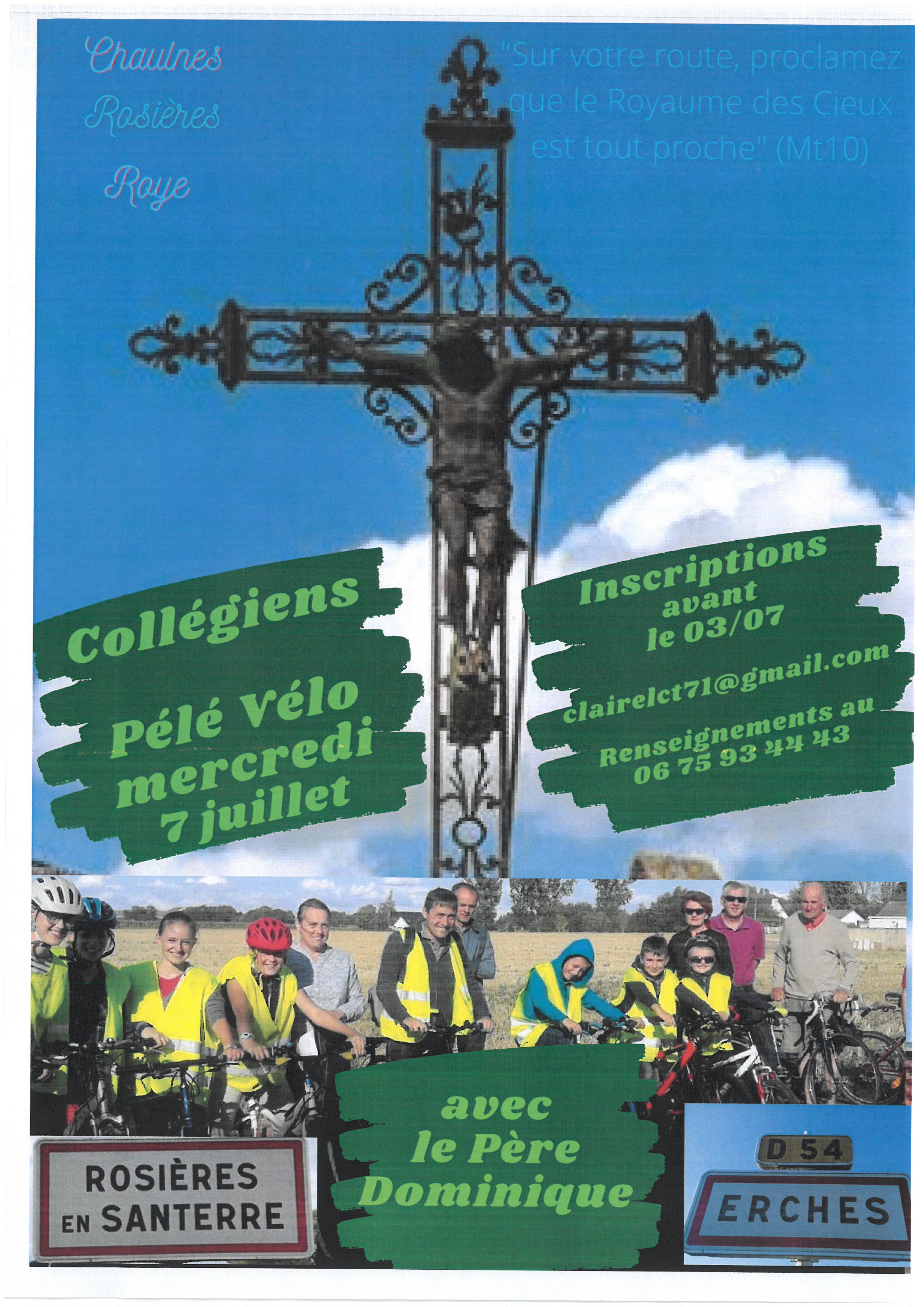 Pré-inscription par mail, le plus rapidement possible avec: Nom Prénom Âge Paroisse Collège Numéro de téléphone des parents à transmettre à clairelct71@gmail.com